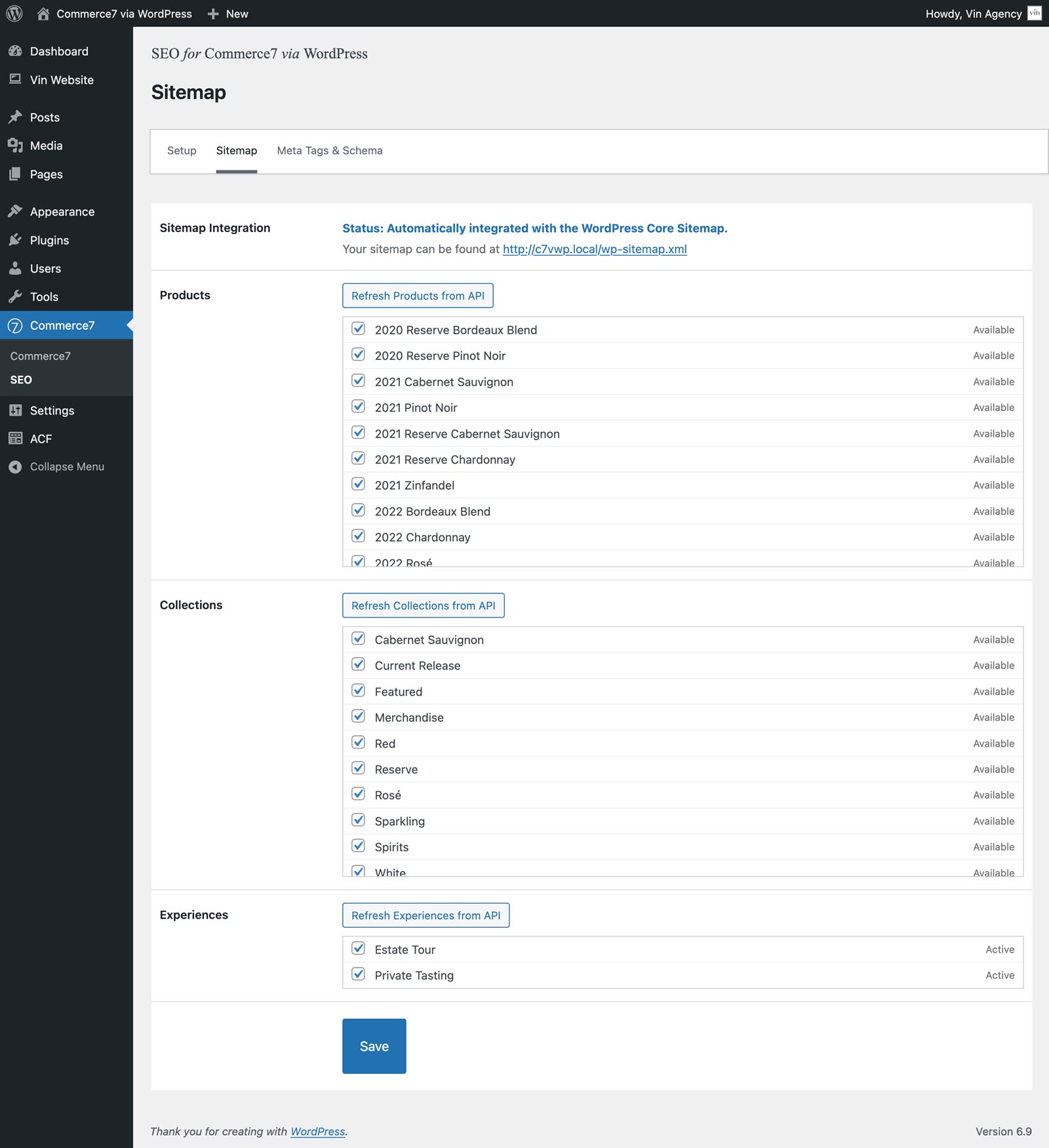 If using a supported SEO plugin, it will be automatically recognized and integrated with your selected Commerce7 Products, Collections, and Experiences.